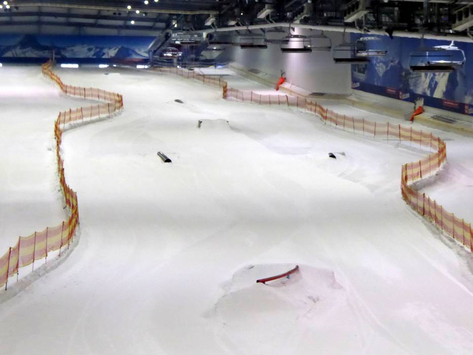 Die Skihalle SnowWorld Bispingen bietet einen schönen Snowpark mit vielen Hindernissen und Jumps das ganze Jahr über.