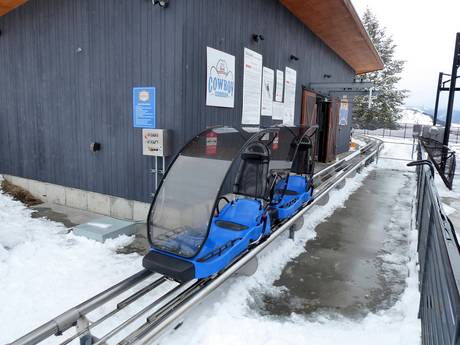 Familien sind im Skigebiet Snow King Mountain gut aufgehoben. An den Förderbändern im Tal und am Berg kann man wunderbar auf leichten Pisten dem Wintersport nachgehen. Die ansässige Skischule bietet Kurse für Kinder mit an. Neben dem Skifahren können Familien auch den Cowboy Coaster erleben oder sich auf eine Tubingbahn freuen.