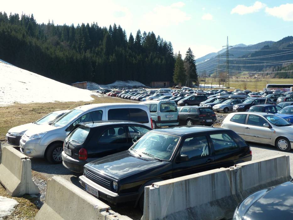 Parkplätze: meist ausreichend vorhanden, asphaltierter Platz, Kiesplatz, kostenfrei