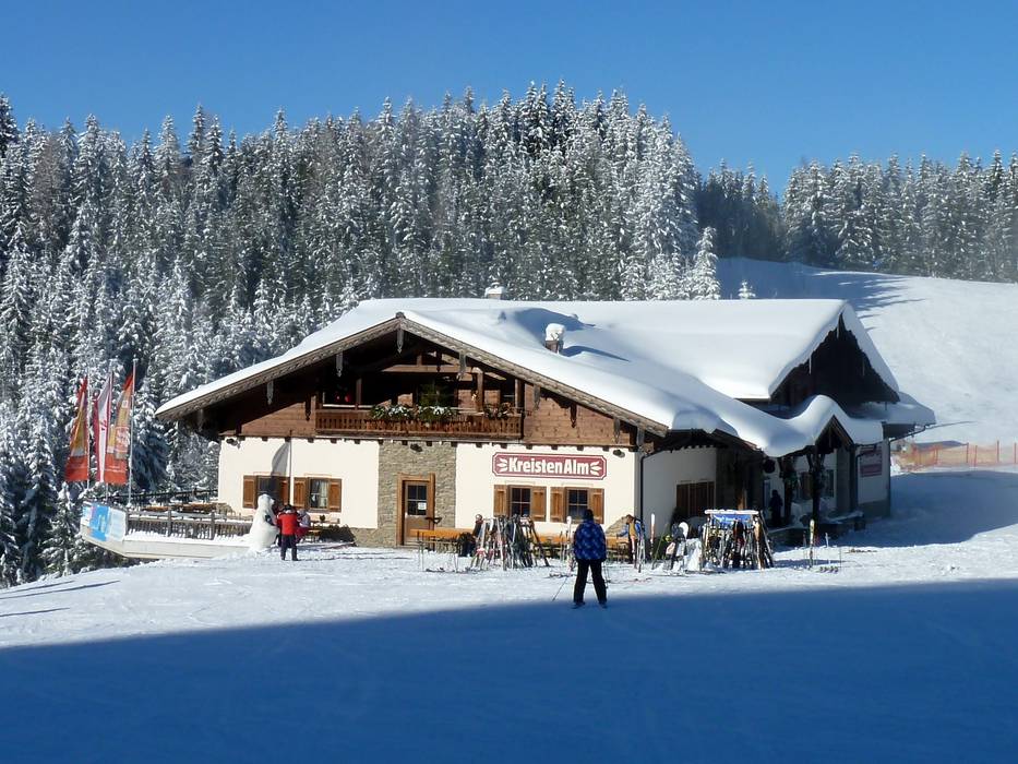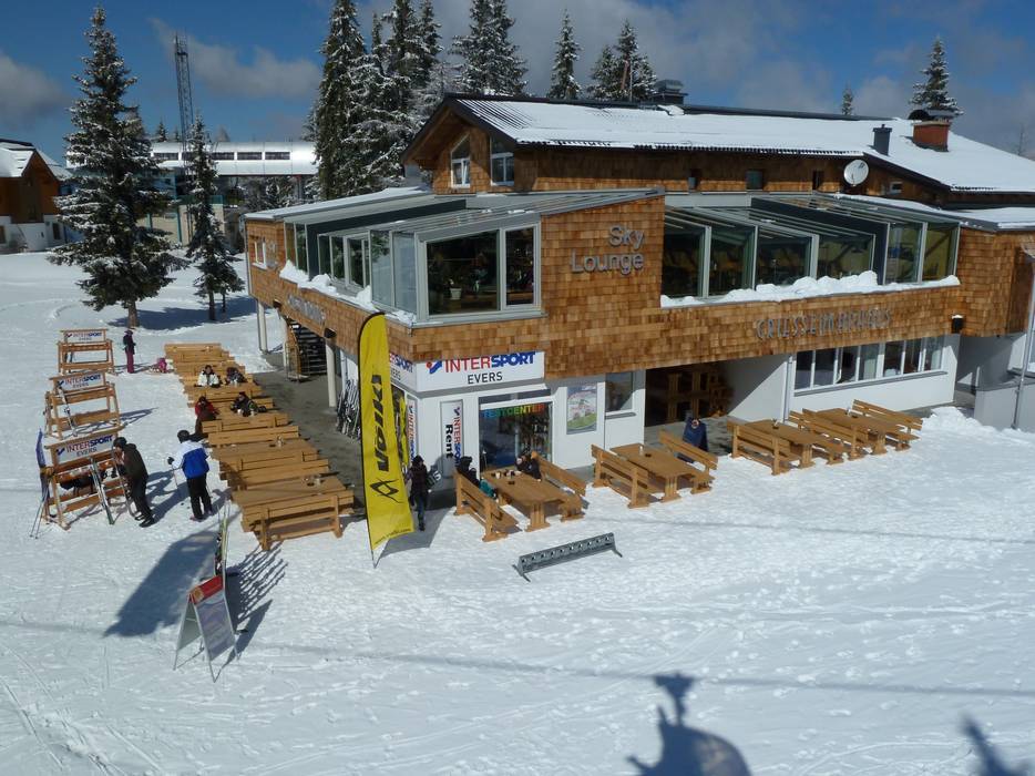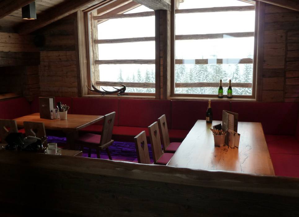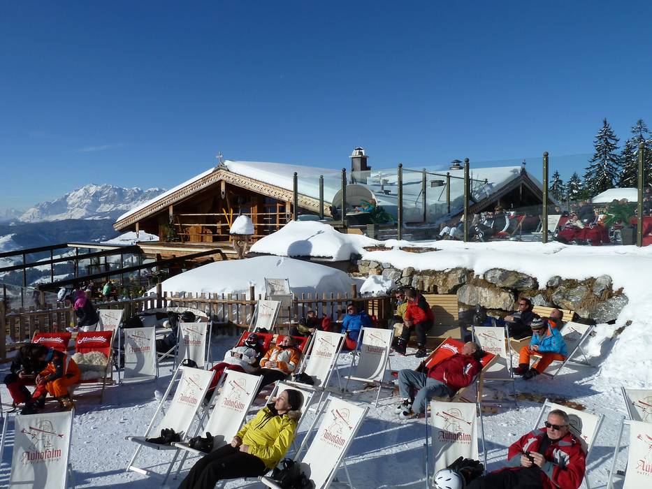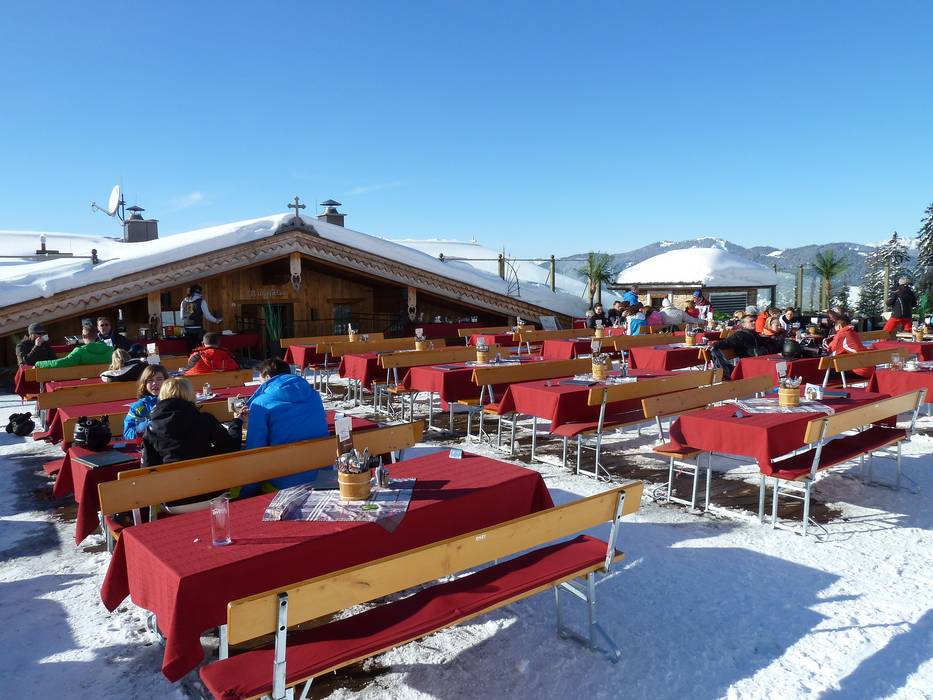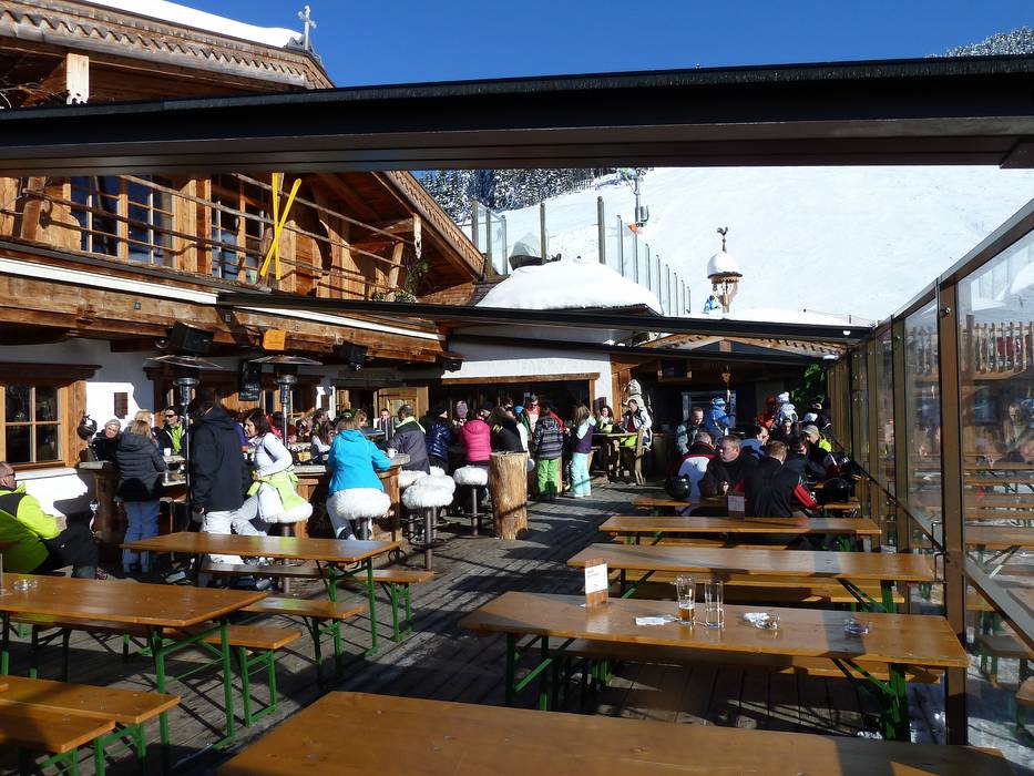 Urige und gemütliche Hütte mit großer Sonnenterrasse zum Mittagessen und Après Ski.