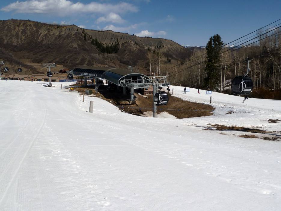 Die 8er-Kabinenbahn Elk Camp Gondola hat eine bergseitige Mittelstation und eine Kurve.