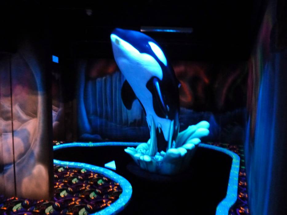 Am Eingang zur Skihalle befindet sich eine Art Minigolf Parcours. Man spielt hier aber die 18 Löcher in dunklen Räumen, die nur mit fluoreszierendem Schwarzlicht beleuchtet sind. Ein Erlebnis für Jung und Alt.