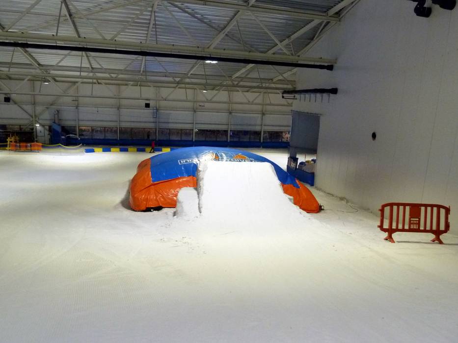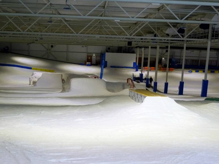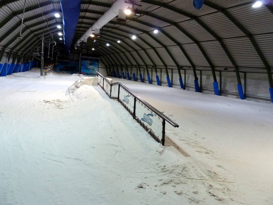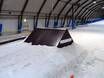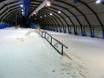 Nahezu in der gesamten Skihalle findet man von Rails über Jumps, bis hin zum Bag-Jump Luftkissen, alles was das Herz begehrt. Diese sind alle leicht per Tellerlift oder Förderband zu erreichen.