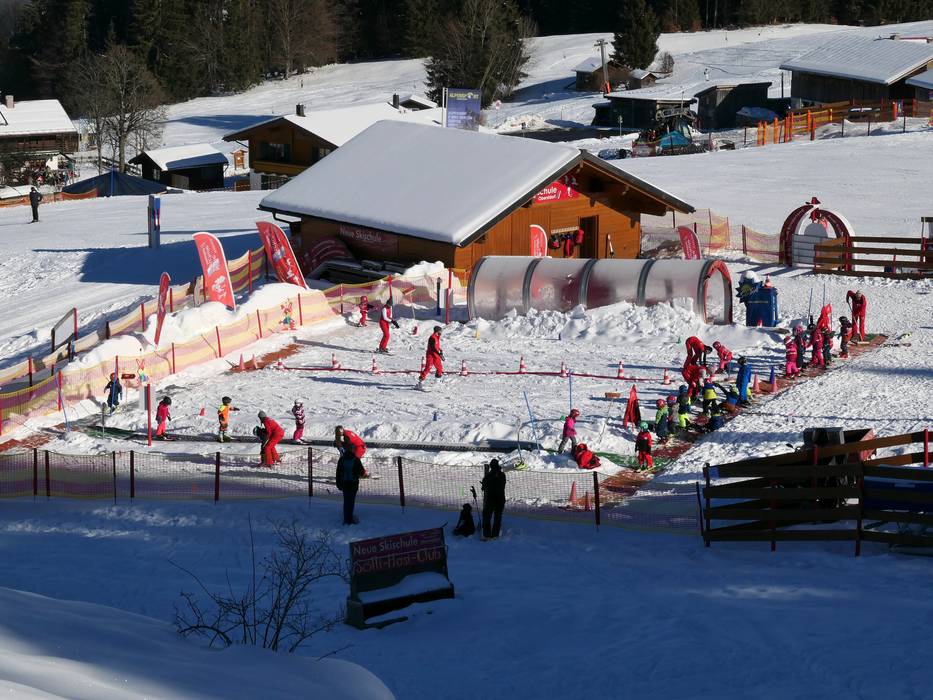 Das sehr große Sölli-Hasi-Kinderland der Neuen Skischule Oberstdorf ist mit Zauberteppichen, Skischulliften, Parcours und einem Kinderhaus mit WC, Wärme- und Spielraum optimal ausgestattet. Es liegt direkt an der Zwischenstation der Söllereckbahn.