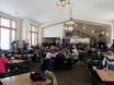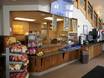 Das Selbstbedienungsrestaurant bietet Frühstück, Mittagessen und Snacks für den Nachmittag. Es werden Gebäck, Salate, Sandwiches und Burger angeboten.