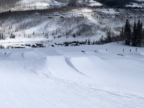 An den Sesselbahnen Moonbeam Express und Sunrise befinden sich zwei Snowparks mit Kickern, Rails und Boxen.