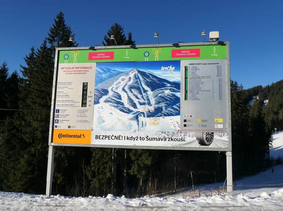 Orientierung (Pistenplan, Informationstafeln, Ausschilderung) und Sicherheit im Skigebiet Špičák
