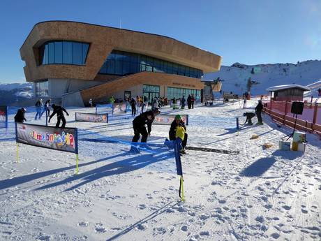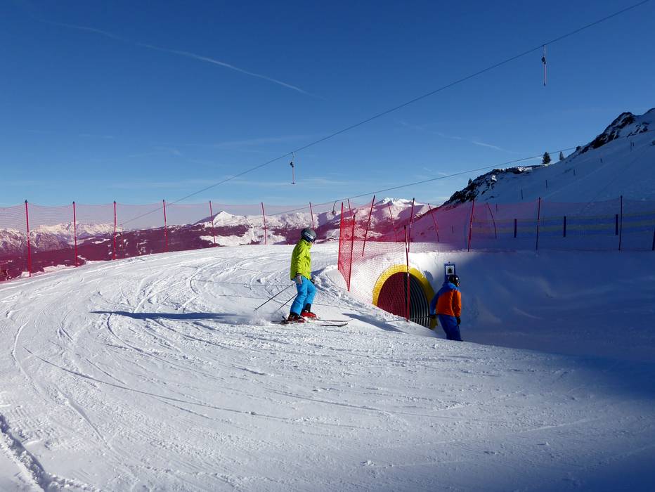 Direkt beim Familienhotel Mia Alpina unterhalb der Talstation der Spieljochbahn gibt es ein kleines Kinderland der Skischule skiCHECK. Unter dem Motto "Ski and Smile" lernen die Kleinen an einem Förderband die ersten Schwünge auf Skiern.
