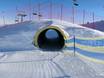 Direkt neben der Bergstation der Spieljochbahn liegt ein großes Übungsareal. Kinder lernen das Skifahren an einem kurzen sowie an einem langen, überdachten Förderband. Mehrere Skischulen nutzen das Areal, um mit den Kleinen zu üben.