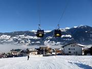Mountain Loft und Spieljochbahn Mit der Spieljochbahn geht es bergwärts Die Spieljochbahn startet direkt in Fügen Abfahrt Geols mit Blick ins Zillertal Die Spieljochbahn mit perfekter Piste