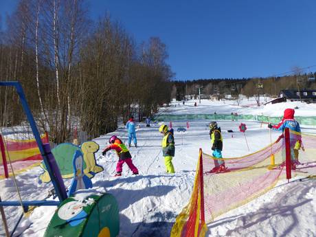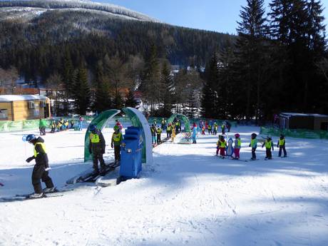 Im Skigebiet Spindlermühle sind Familien und Kinder sehr willkommen. Die Skischule Skol Max betreibt Kinderländer an fast allen Talstationen. Im Skikindergarten Teddy Bear und beim Babysitting Pribináček sind die ganz Kleinen bestens aufgehoben. Die breiten Pisten und der Funtrack Hromovka sind ein Spaß für die ganze Familie. In Bedřichov gibt es eine Snowtubinganlage und einen weiteren Übungslift.