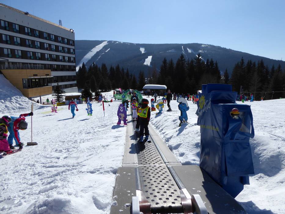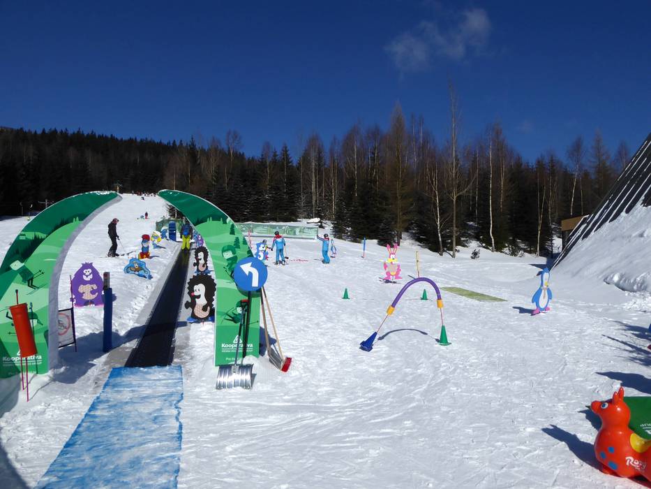 Das größte Kinderland der Skischule Skol Max befindet sich an der Talstation Svatý Petr. Mehrere Förderbänder, Kinderkarussell, Slalom-Parcours und lustige Figuren lassen Kinderherzen höher schlagen.
