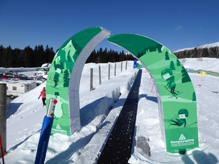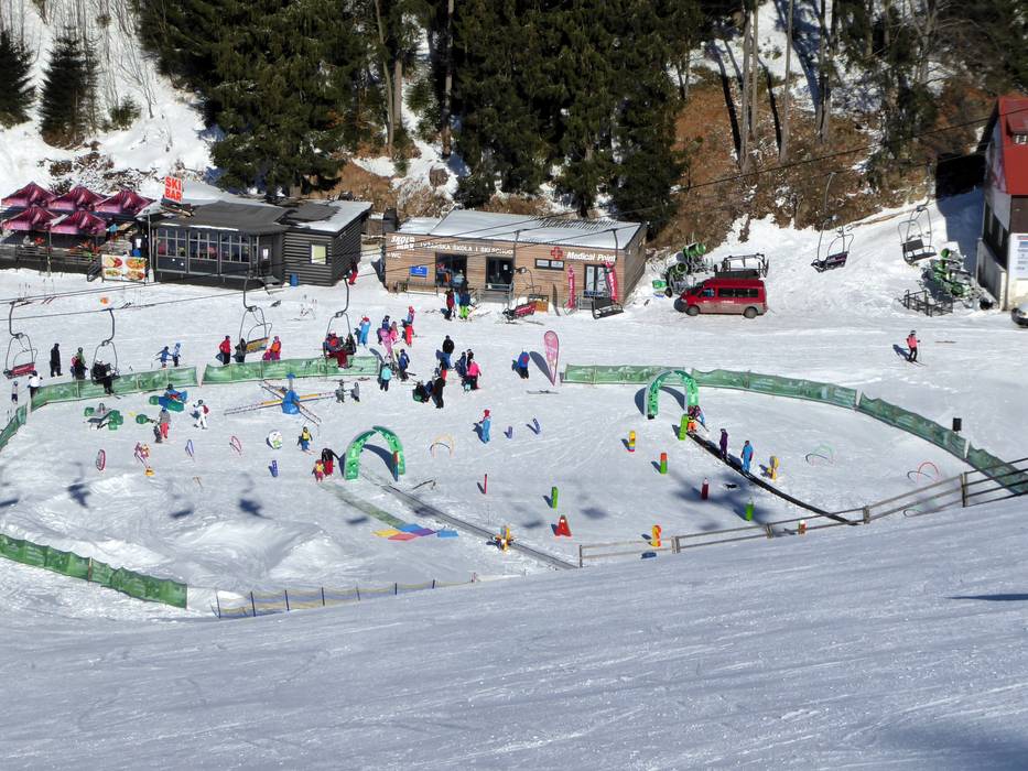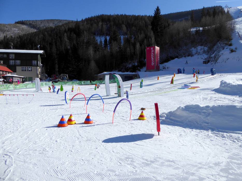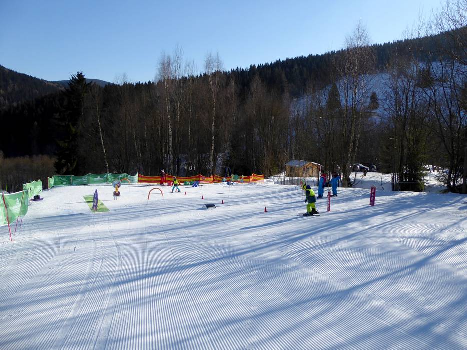 Auf der anderen Straßenseite der Talstation Hromovka befindet sich der schöne Skipark etwas versteckt im Wald. An einem Förderband können die Kleinen in Ruhe Slalom fahren und schöne Stunden auf Ski erleben.