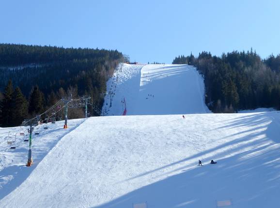 Am Medvědín und am Pláň lockt jeweils eine knackige Abfahrt. Am Stoh gibt es eine weitere schwere Piste. Das Verlassen der Pisten zum Freeriden ist streng verboten, da sich das Skigebiet Spindlermühle im Krkonoše National Park befindet.