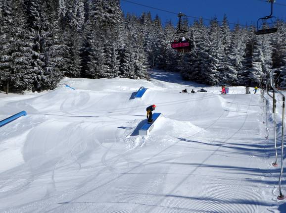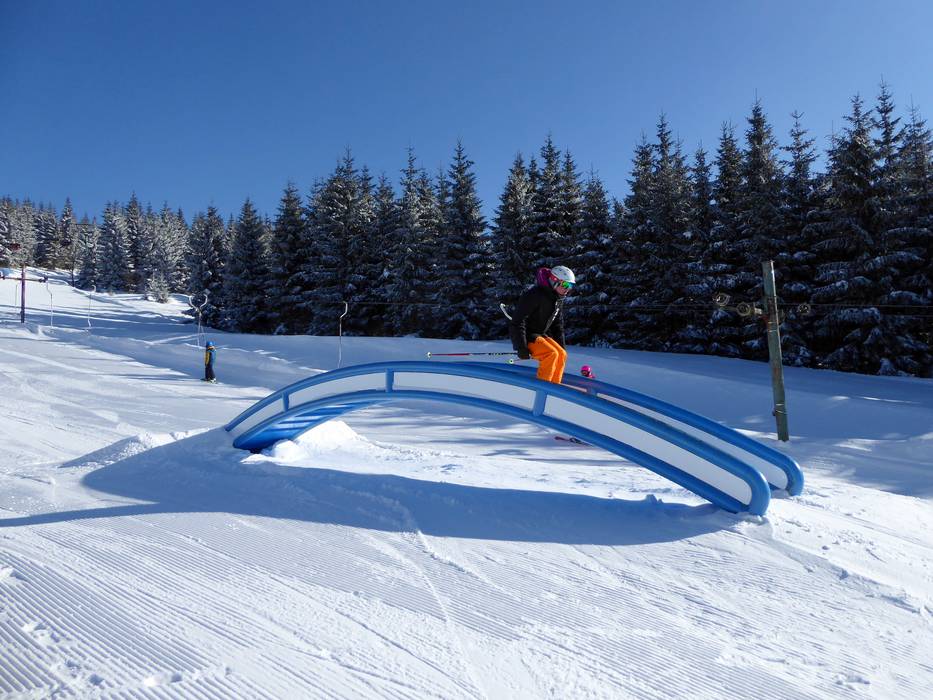 Die Spaßpiste Funtrack Hromovka befindet sich an der Bergstation der gleichnamigen Vierersesselbahn. Bei den leichten Kickern, Rails, Boxen und Wellen erfreut sich die ganze Familie.