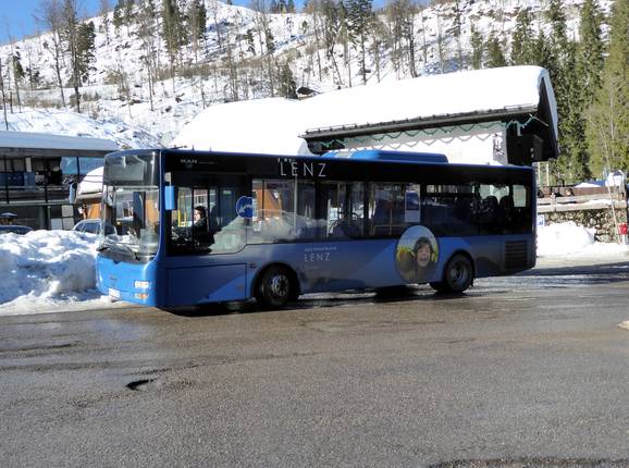 Der nächste Bahnhof ist Fischausen-Neuhaus (Schliersee) der BOB (Bayerische Oberlandbahn). Von dort gelangt man mit dem Bus bis zur Talstation der Stümpflingbahn. - Skibusse