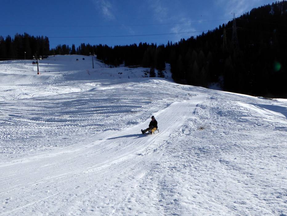 Die Schlittelbahn bei der ersten Sektion der Gondelbahn ist für die ganze Familie geeignet. Die Strecke ist 2 km lang bei einem Höhenunterschied von 260 m. Beim Nachtskifahren ist sie beleuchtet. Schlitten können gemietet werden.
