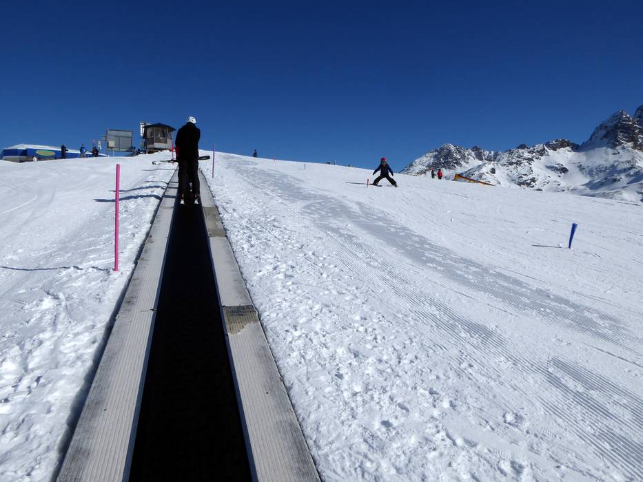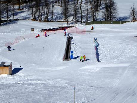 Das Kinderland an der Talstation wird von der Schweizer Ski- und Snowboardschule Splügen betreut und bietet einen Zauberteppich.