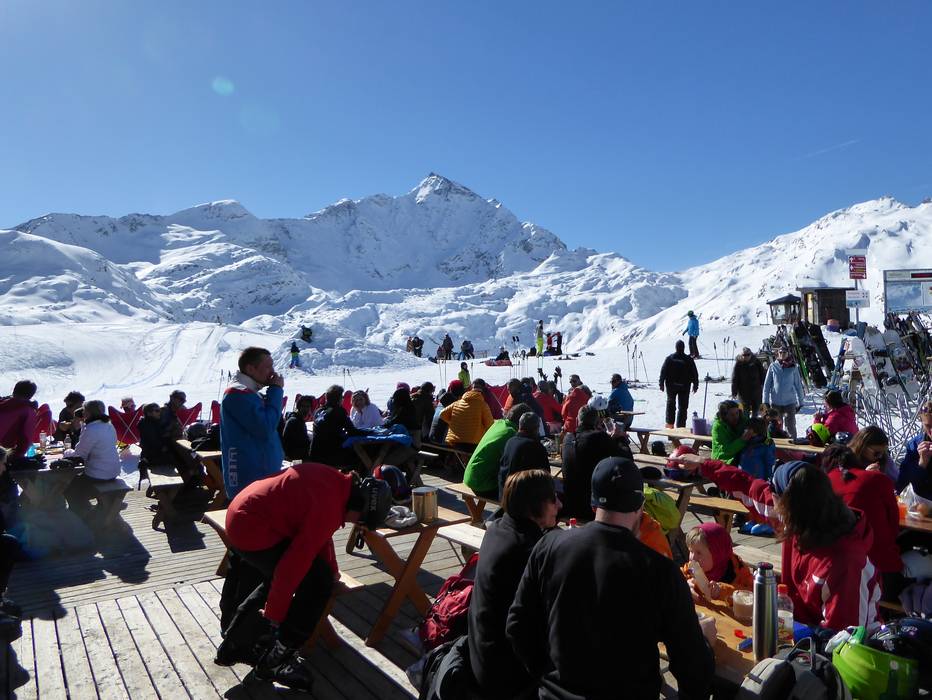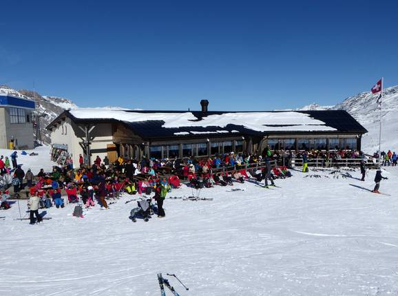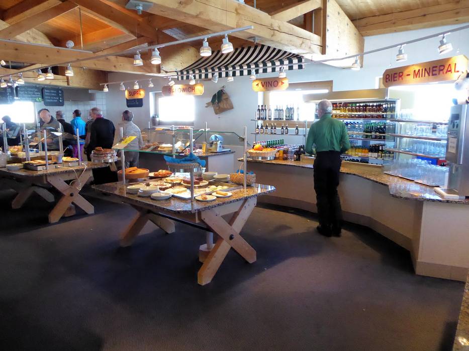 Das Selbstbedienungsrestaurant liegt mitten in der Tambo Bergwelt. Von der großen Sonnenterrasse hat man einen herrlichen Blick auf den Piz Tambo. Es wird typisches Skifahreressen angeboten.
