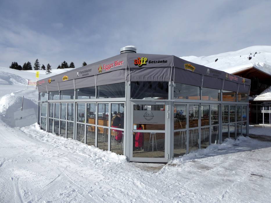 In Warth kehrt man in der Schirmbar des Hotels Steffisalp ein. Nach dem Skifahren geht es hier lustig her und es kann auch schon mal länger werden.