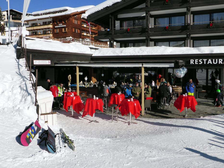 Gute Stimmung und gutes Essen sind hier geboten. Es gibt täglich Live-Musik zum Après-Ski.
