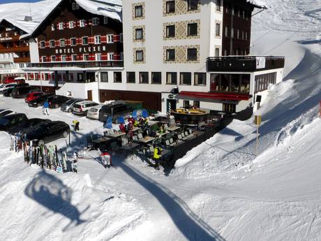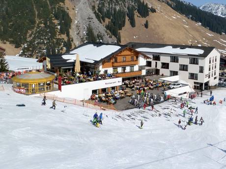 In Warth kehrt man in der Schirmbar des Hotels Steffisalp ein. Nach dem Skifahren geht es hier lustig her und es kann auch schon mal länger werden.