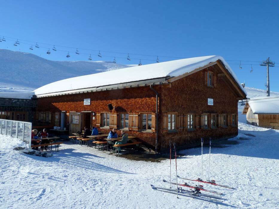 Urig und romantische Berghütte mitten im Skigebiet von Schröcken gelegen. Die heimischen Spezialitäten sind Kässpatzn und Kaiserschmarrn. Bei schönem Wetter lockt die Sonnenterrasse.
