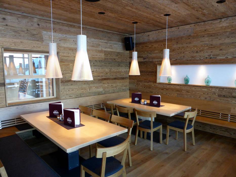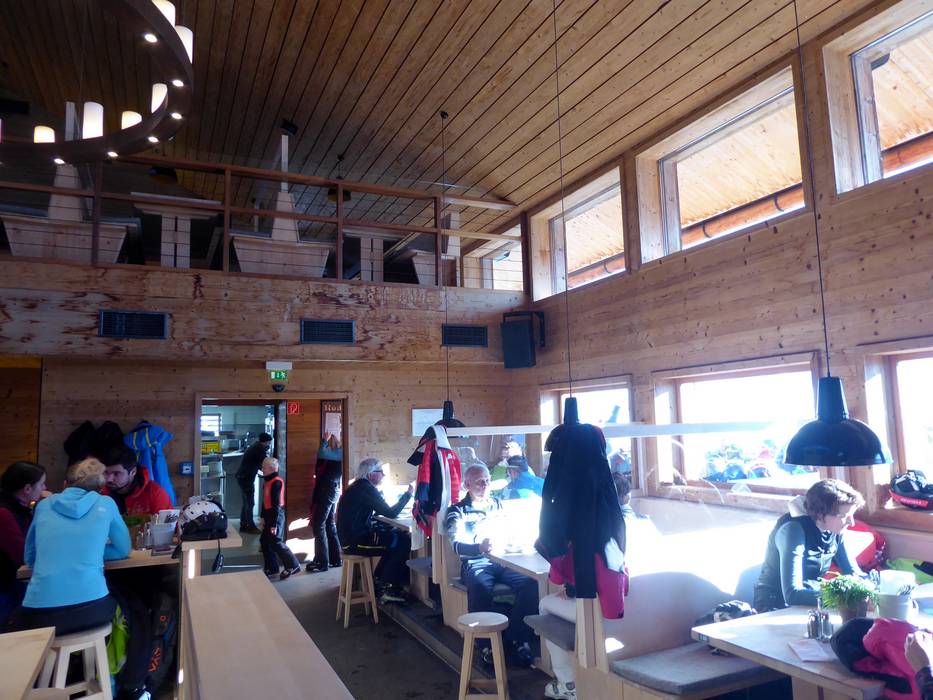 Die Skihütte ist komplett aus Holz im modernen Stil gebaut und bietet eine hervorragende Küche. Von Suppen, Salaten, Käsespätzle bis hin zu echtem Wiener Schnitzel wird alles geboten. Sehr zu empfehlen sind auch die Holzofenpizzen. Es wird auch Après-Ski am knisternden Kamin geboten.