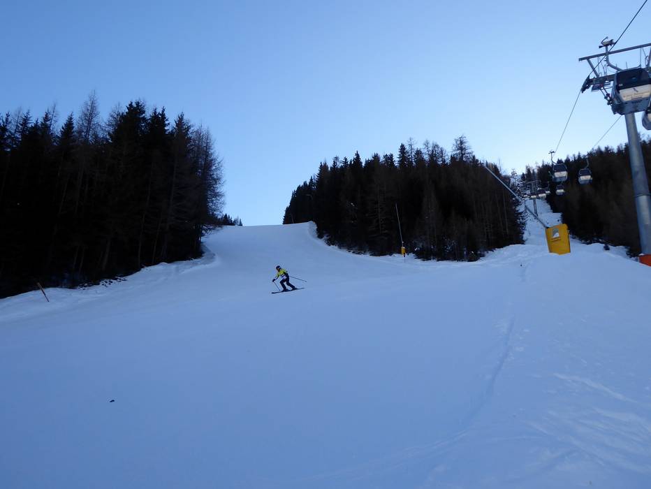 Attraktive schwarze Piste vom höchsten Punkt im Skigebiet entlang der 6er-Sesselbahn Leppleskofel