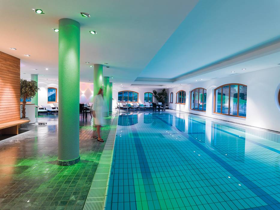 Nach einem erlebnisreichen Tag in den Bergen lädt der Wellnessbereich ein, neue Kraft und Energie zu tanken. Ein großes Hallenbad und ein eleganter Saunabereich mit Finnischer Sauna und Dampfbad runden das Angebot ab. Im lichtdurchfluteten Fitnessraum kann man Kraft und Ausdauer trainieren. Massagen und Beautyanwendungen können jederzeit gebucht werden.