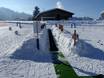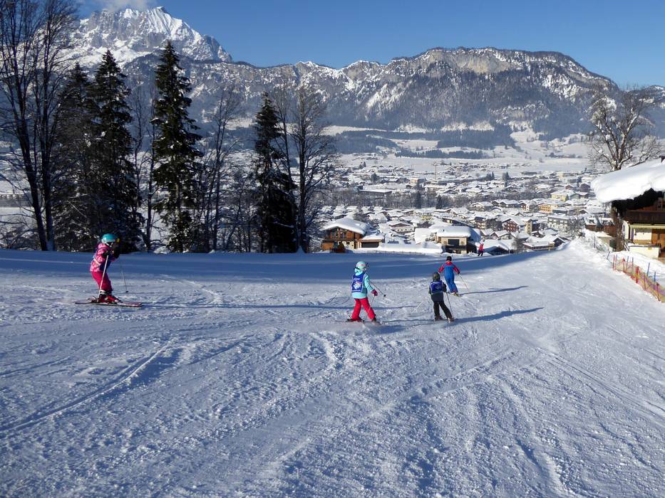 An der Talstation der Hochfeldlifte in St. Johann in Tirol betreibt die Skischule Wilder Kaiser das Kinderland am Rueppenlift. Das Gelände ist ideal gelegen und bietet einen eigenen Zauberteppich und lustige Figuren.
