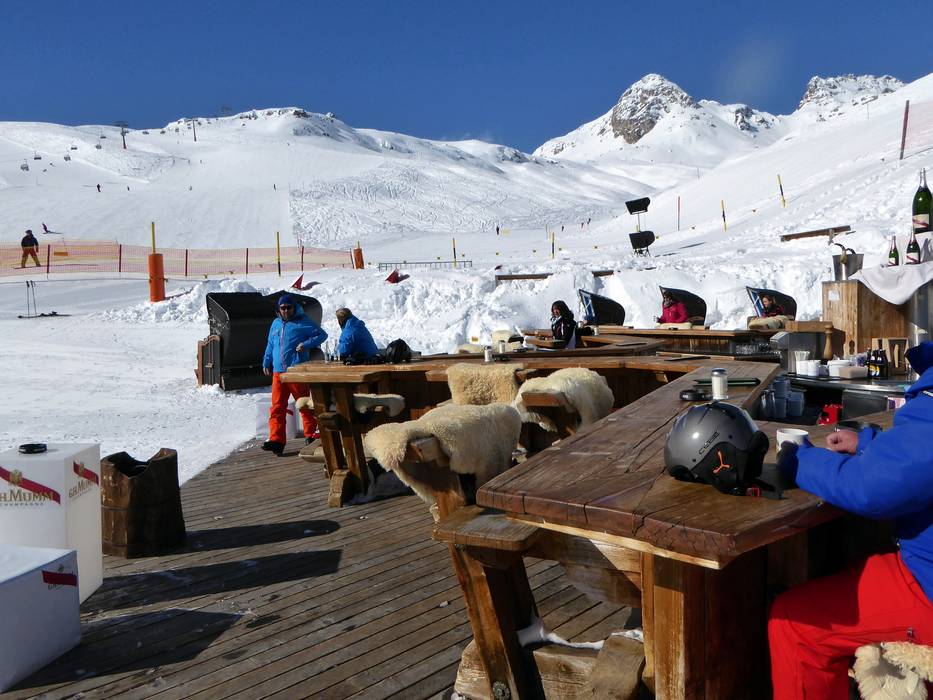 An der Schneebar der Alpina Hütte oder im Sonnenstuhl kann man den Skitag wunderbar ausklingen lassen und den herrlichen Ausblick auf das Engadin genießen. Man muss aber immer noch um 16 Uhr ins Tal abfahren.