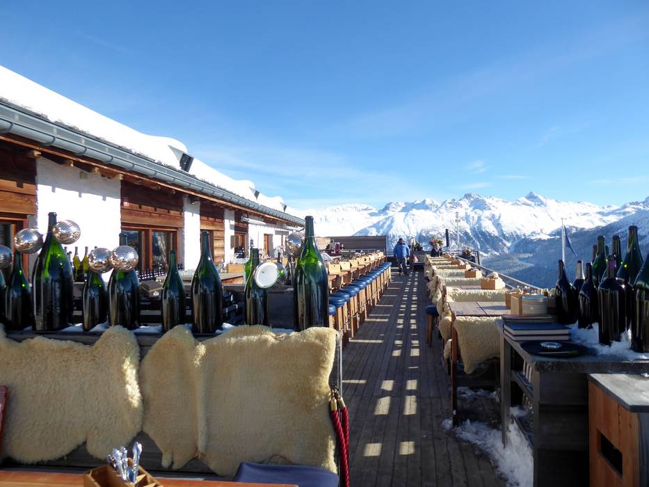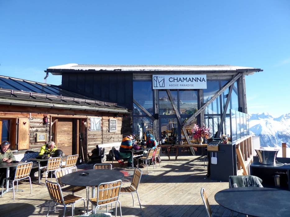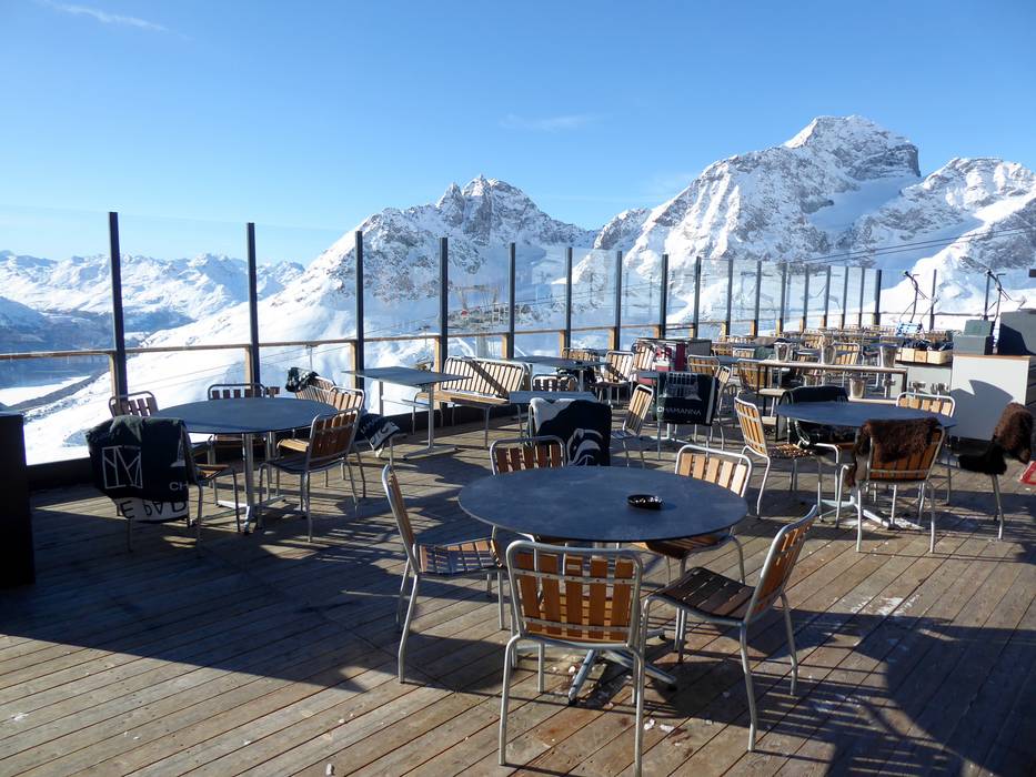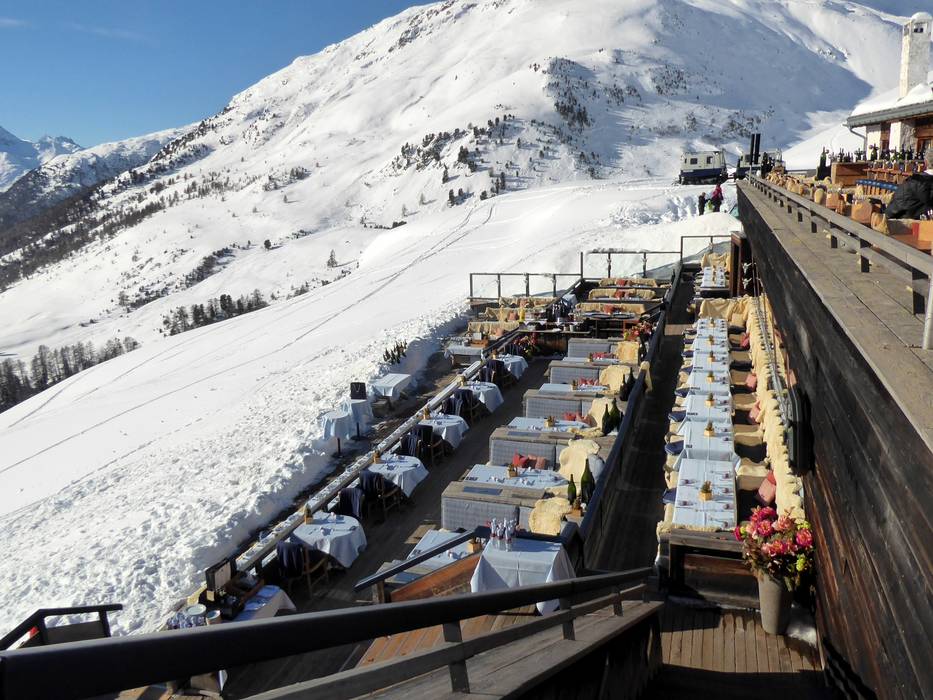 Gourmetrestaurant der höheren Preisklasse mit atemberaubenden Blick auf die Engadiner Berge. Die Sonnenterrasse und eine Bar laden die Gäste des Mountain Clubs zum Verweilen ein. Die Champagner- und Weinkarte lässt keine Wünsche offen.