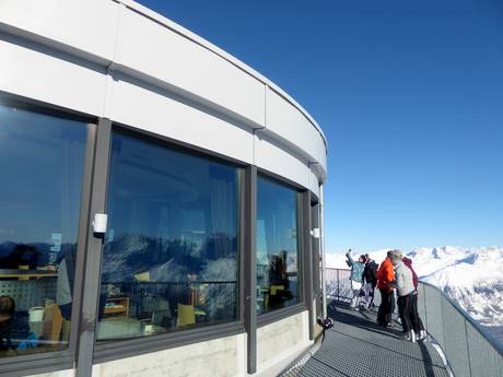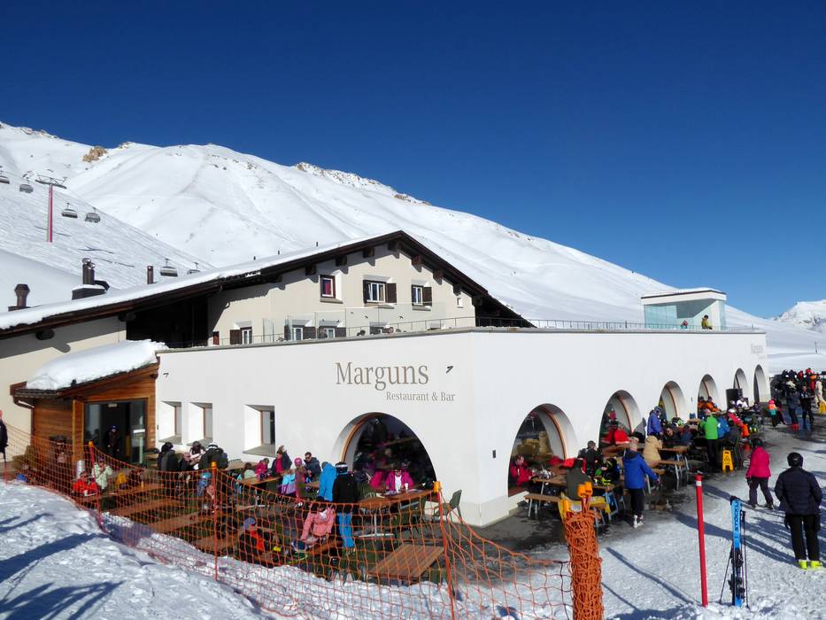 Panoramarestaurant am höchsten Punkt im Skigebiet mit perfekter Rundsicht und typischen Engadiner Spezialitäten. Bei schönem Wetter lockt die Sonnenterrasse.