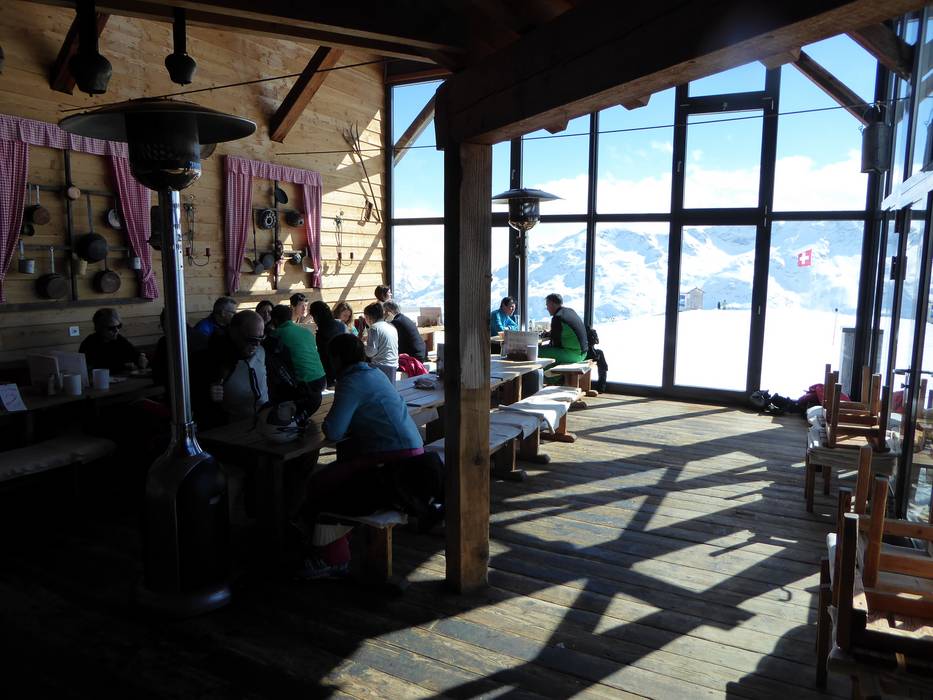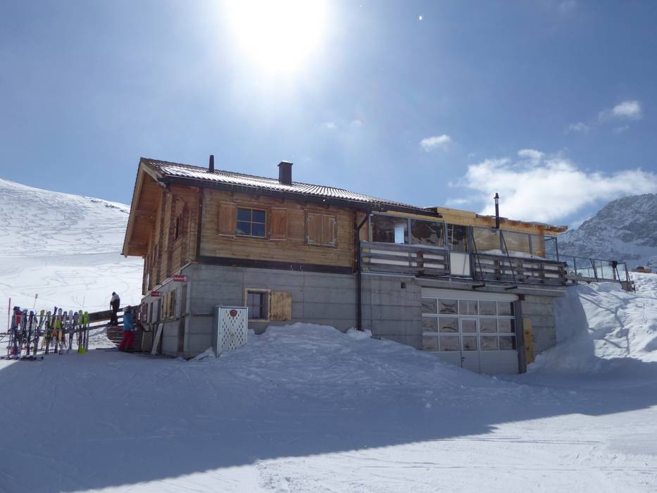 Die urige Berghütte Glünetta bietet eine schöne Sonnenterrasse und Apéro-Bar. Es gibt Rösti in allen Variationen, Raclette und Käsefondue.