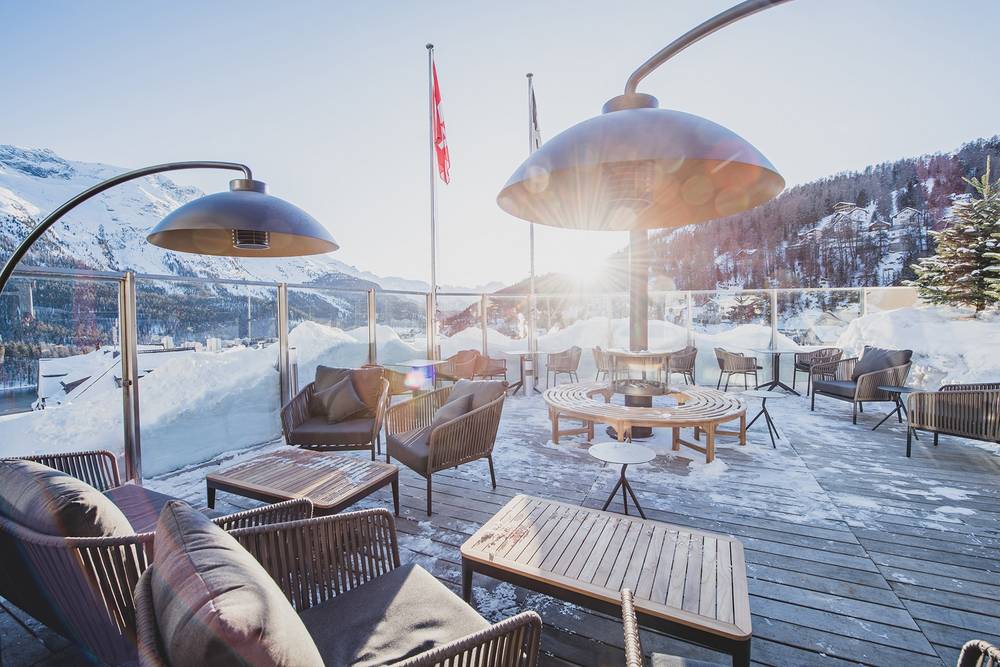Die St. Moritz Sky Bar befindet sich ebenfalls im 6. Stock und ist die einzige Rooftop Bar von St. Moritz. Sie ist bei Einheimischen wie Gästen gleichermaßen beliebt.