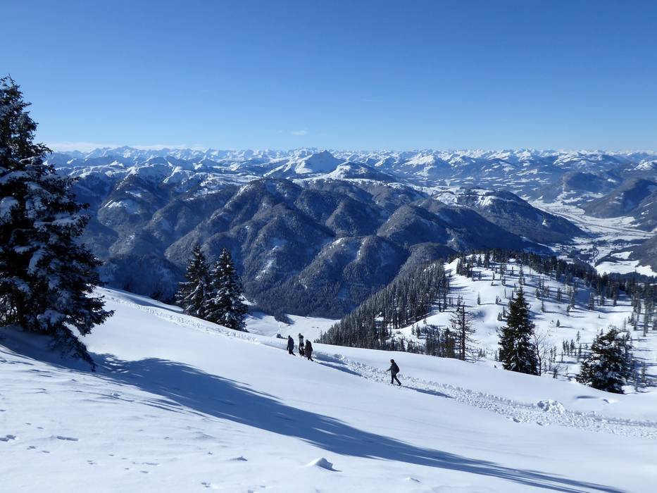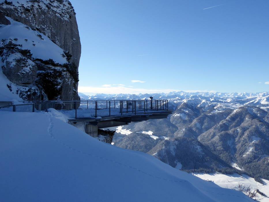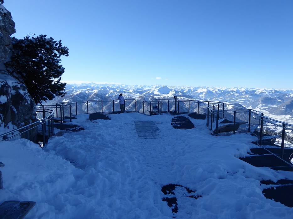 Der Winterwanderweg zur Aussichtsplattform und zur Tropfsteinhöhle ist für die ganze Familie ein Erlebnis. Er startet an der Bergstation der Gondelbahn Waidring-Steinplatte im Triassic Park.