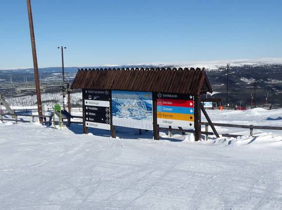 Im Skigebiet Stöten sind die Pisten mit großen Pistenplänen alle sehr gut ausgeschildert. Aktuelle Betriebsinformationen zu den geöffneten Liften und Pisten findet man jedoch nur online in der App oder auf der Webseite des Skigebiets.