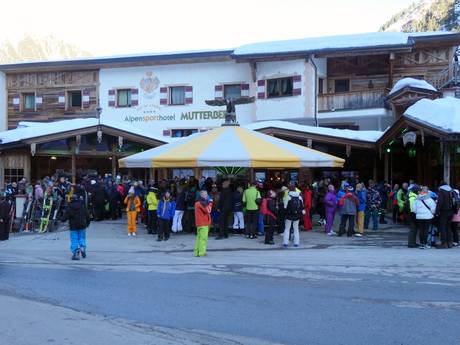 Eine erste Anlaufstellen direkt im Skigebiet ist der Schneekristall Pavillon bei der Bergstation Gamsgarten. An der Talstation feiert man beim Après-Ski-Schirm des Alpensporthotels Mutterberg.