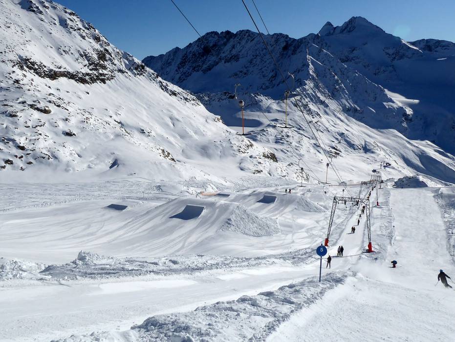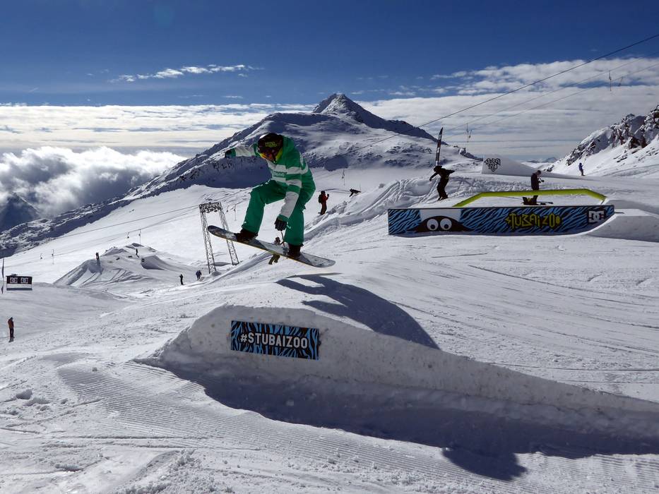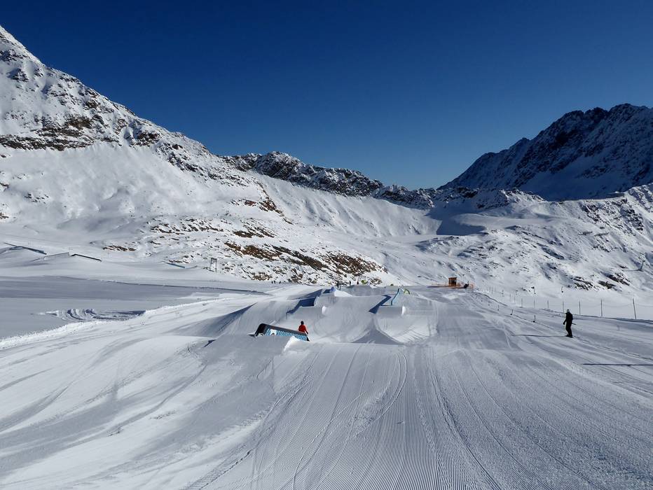 Der Snowpark am Stubaier Gletscher zählt im Herbst und Frühjahr zu den größten und abwechslungsreichsten in Österreich. Hier trainieren dann auch die weltbesten Snowboarder und Freeskier. Im Hochwinter ist er auch geöffnet, aber etwas verkleinert. Für Familien gibt es eine Fun Slope mit kleinen Sprüngen am Eisjochferner.