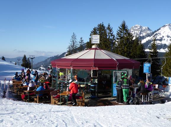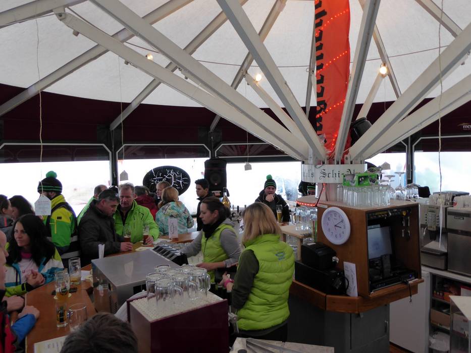 Die Schirmbar Geierwally bietet beste Stimmung ab dem frühen Nachmittag. Hier kann man den Skitag wunderbar ausklingen lassen. Man muss aber noch ins Tal abfahren.