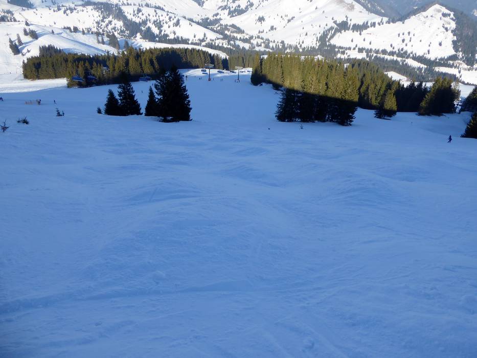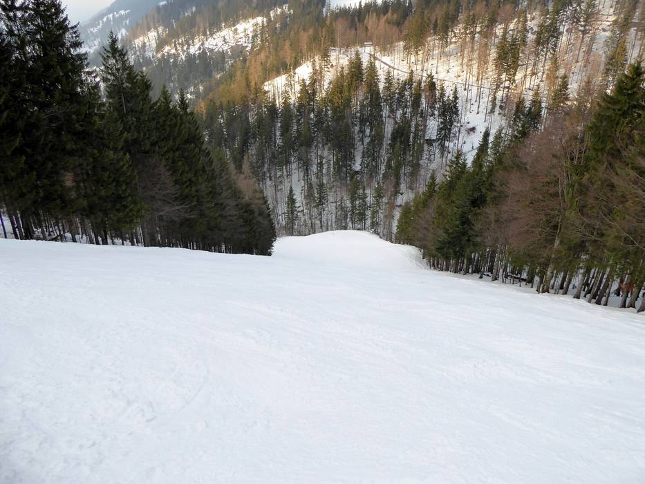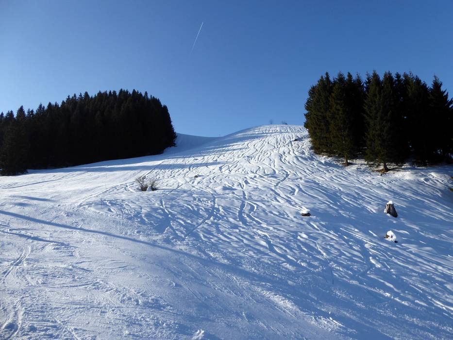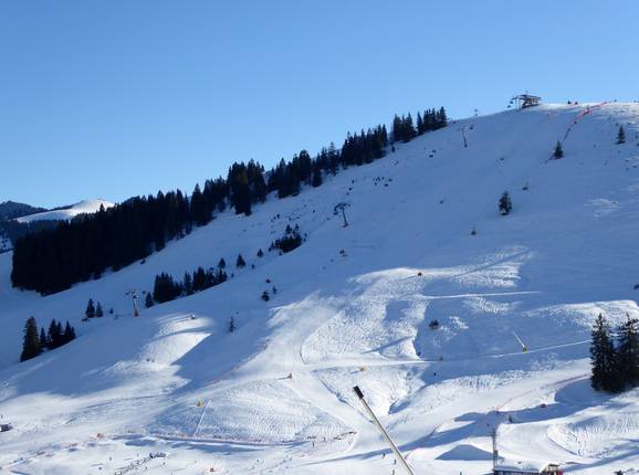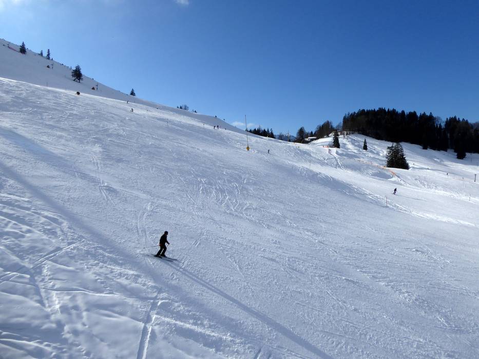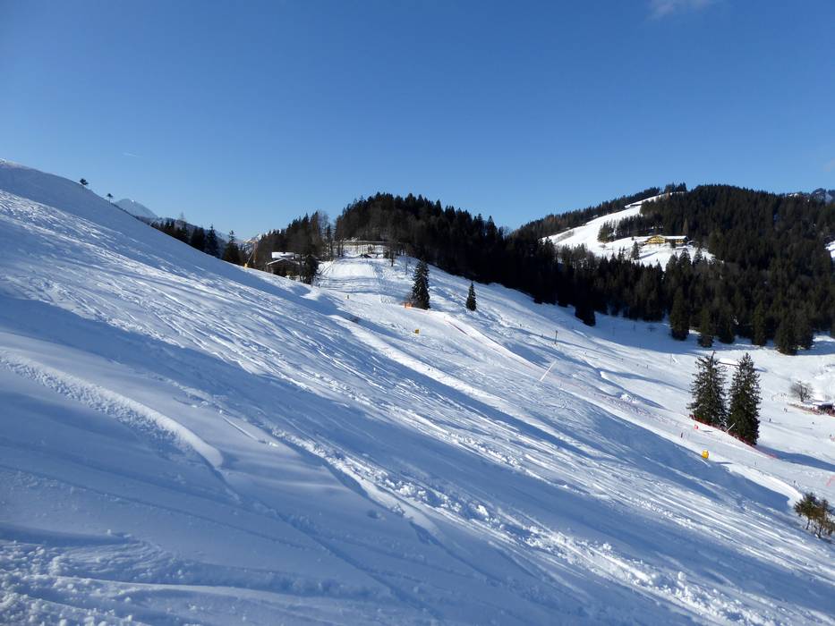 Die Skiroute Stockhang (präpariert bei guter Schneelage) führt von der Mittelstation zur Talabfahrt nach Bayrischzell.
