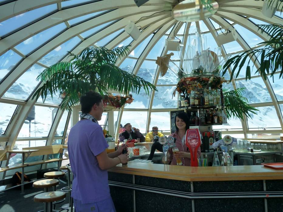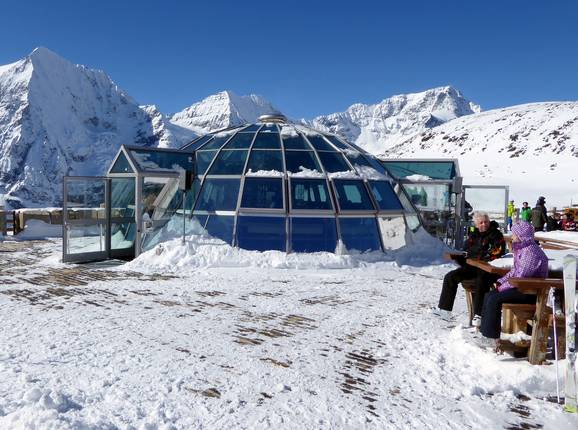 Die Iglu Bar an den Schöntaufliften ist bei jedem Wetter eine Attraktion: Bei schlechtem Wetter bietet sie Schutz, bei gutem Wetter eine tolle Aussicht auf das Skigebiet und die umliegenden Berge. Zwischen Palmen und Schneebergen kann man hier den Skitag ausklingen lassen.