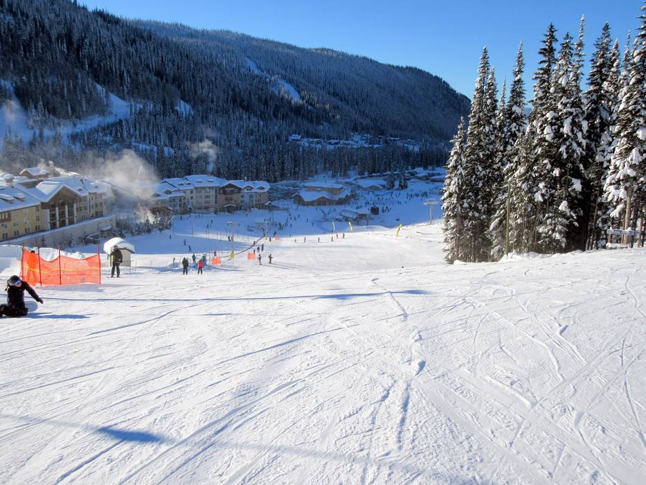 Ein Großteil der Pisten führt zurück ins Sun Peaks Village.