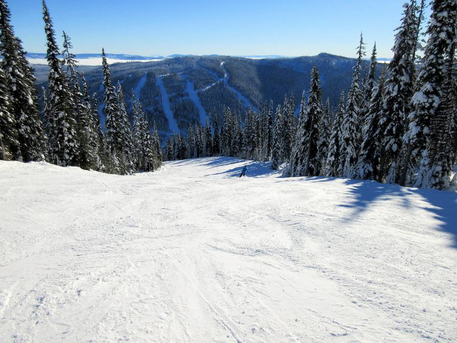 Das Skigebiet Sun Peaks bietet Abfahrten aller Schwierigkeitsgrade. Anfänger kommen auf den vielen leichten und langen Pisten voll auf ihre Kosten. Die Könnerherzen schlagen bei den schweren Pisten und Waldabfahrten höher. Die meisten Pisten führen durch Waldschneisen zu Tale. Am Mt. Tod und in der Crystal Bowl schwingt man über nahezu baumfreie Hänge.