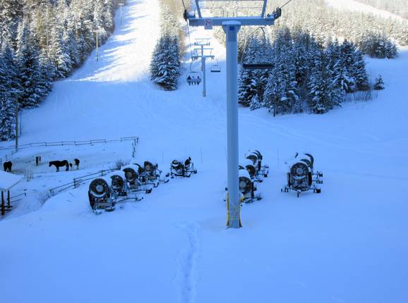 Das Skigebiet Sun Peaks ist sehr schneesicher, da es in einer schneereichen Region in Kanada liegt. Die Saison startet im November und geht immer bis nach Ostern. Zusätzlich können Schneekanonen nachhelfen.