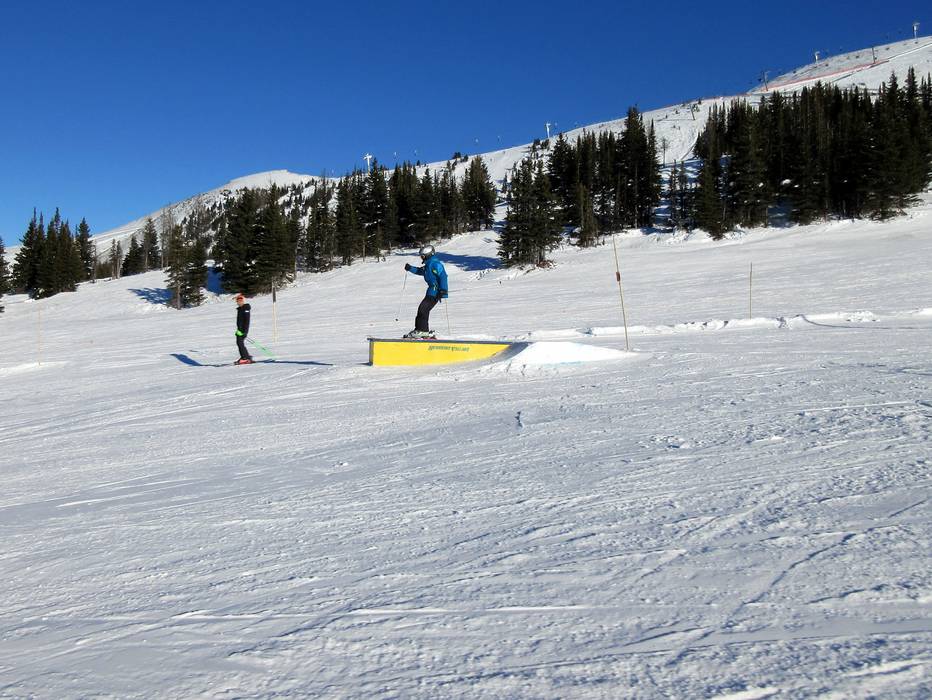 Der Grizzly XL Terrain Park ist der Snowpark für Könner. Große Jumps, Rails und Boxen fordern hier auch die Fortgeschrittenen Freestyler. Mit der Vierersesselbahn Great Divide Express ist der Park bequem zu erreichen.