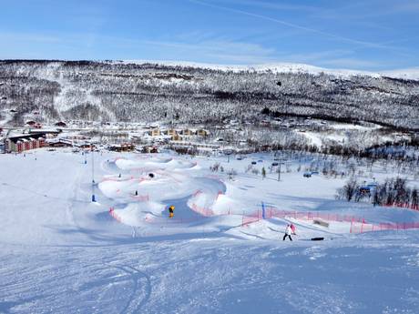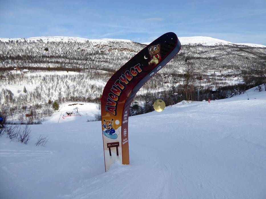 Die Funslope in Hamra im Skigebiet Tänndalen ist eine spielerische Erlebnisabfahrt mit kleinen Wellen, Kurven und lustigen Elementen, die für Abwechslung sorgen. Hier hat die ganze Familie großen Spaß.
