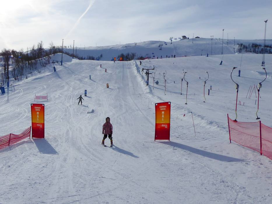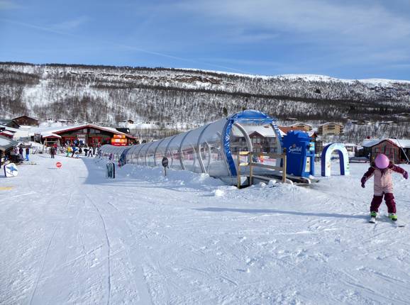 Ein liebevoll gestalteter Kinderbereich in Hamra mit eigenem Kinderlift, Förderband und sicheren Übungszonen – ideal für die ersten Schritte im Schnee.