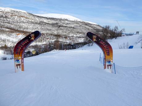 Die Ski Cross Strecke in Hamra im Skigebiet Tänndalen bietet eine abwechslungsreiche und actionreiche Abfahrt mit Wellen, Steilkurven und kleineren Sprüngen. Hier können alle Kinder richtig Spaß haben und spielerisch ihre Skifahr-Fähigkeiten ausprobieren und verbessern.